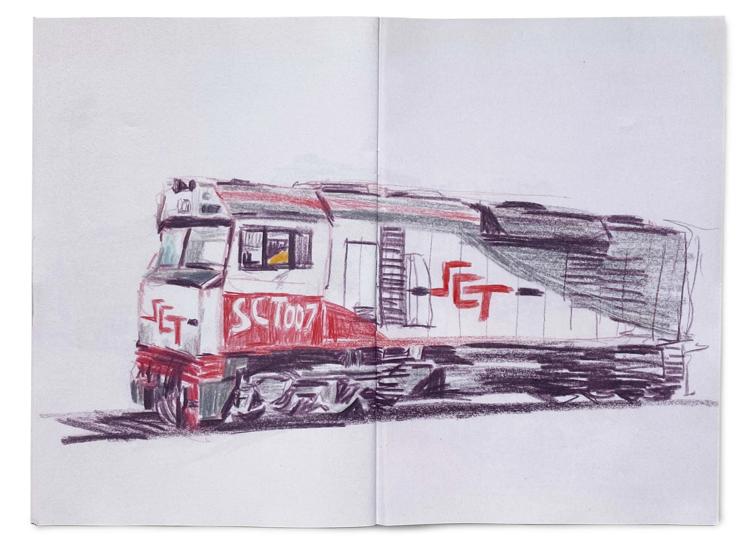 In this series of colored pencil illustrations, Hogan explores his interest in Australian diesel locomotives. From his travels up and down the east coast of Australia, he seeks out and appreciates these engines, as some are retired and eventually scrapped.
